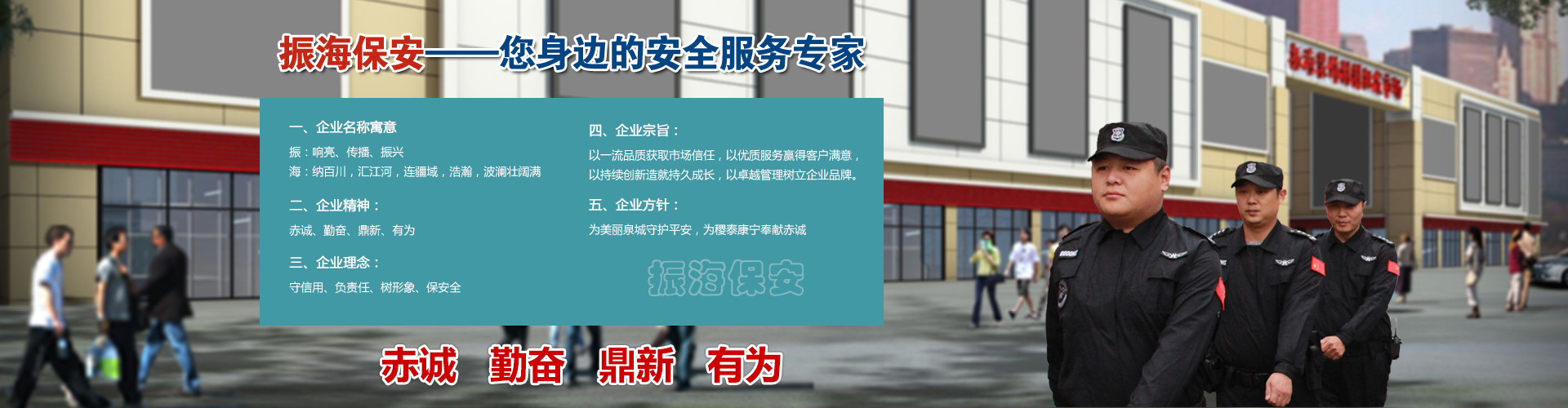 山東振海保安服務(wù)有限公司是一家專業(yè)的保安服務(wù)公司,提供人防安保、臨時(shí)勤務(wù)安保、危機(jī)處理安保、犬防安保、反跟蹤、調(diào)查、商業(yè)間諜等服務(wù),公司成立于2015年5月,是通過(guò)國(guó)家公安部門(mén)資質(zhì)認(rèn)證,經(jīng)山東省公安廳和濟(jì)南市工商局批準(zhǔn)成立的綜合性民營(yíng)保安公司。公司立足濟(jì)南,面向山東省內(nèi)外,開(kāi)展的業(yè)務(wù)涵蓋人防、技防、安檢、守護(hù)、隨身護(hù)衛(wèi)、大型活動(dòng)特勤等安保項(xiàng)目。公司總部坐落于濟(jì)南市市中區(qū)英雄山立交樞紐南側(cè)振海裝飾材料市場(chǎng)大樓;公司培訓(xùn)基地位于濟(jì)南市南部山區(qū)。